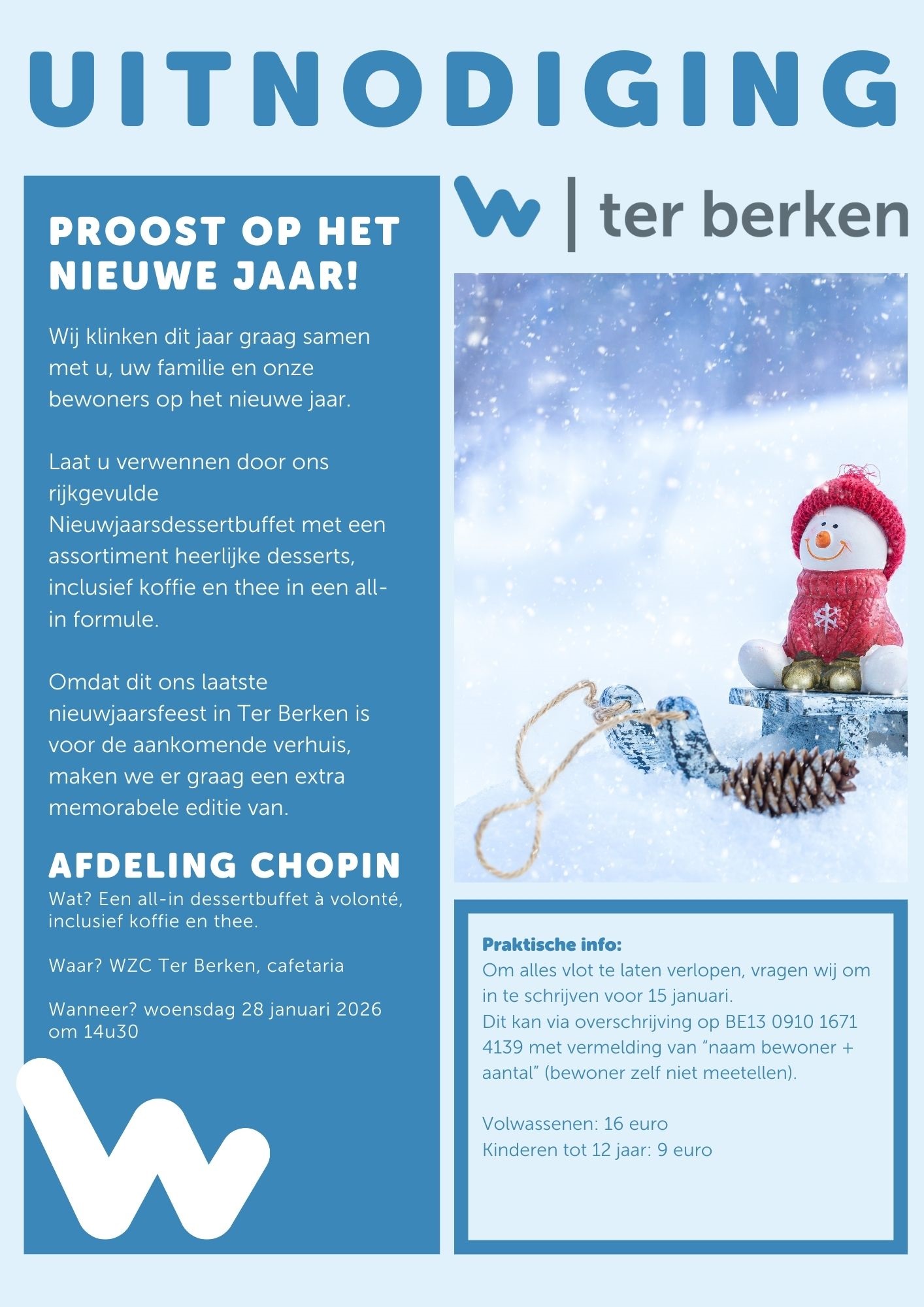 Samen klinken we op het nieuwe jaar en genieten we van een gezellig buffet vol lekkers. Iedereen welkom!